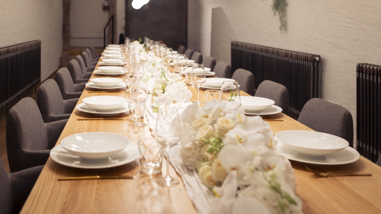 Erlesene Materialien, exklusives Ambiente und ein Service, der Ihnen alle Wünsche von den Lippen abliest. In diesem aussergewöhnlichen Raum mit geschmackvollem Flair und geschichtsträchtiger Vergangenheit werden Ihre exklusiven Anlässe vom hauseigenen Catering-Service umsorgt. Erleben Sie im gepflegten Rahmen unvergessliche Momente mit Geschäftspartnern, Familien oder Freunden.